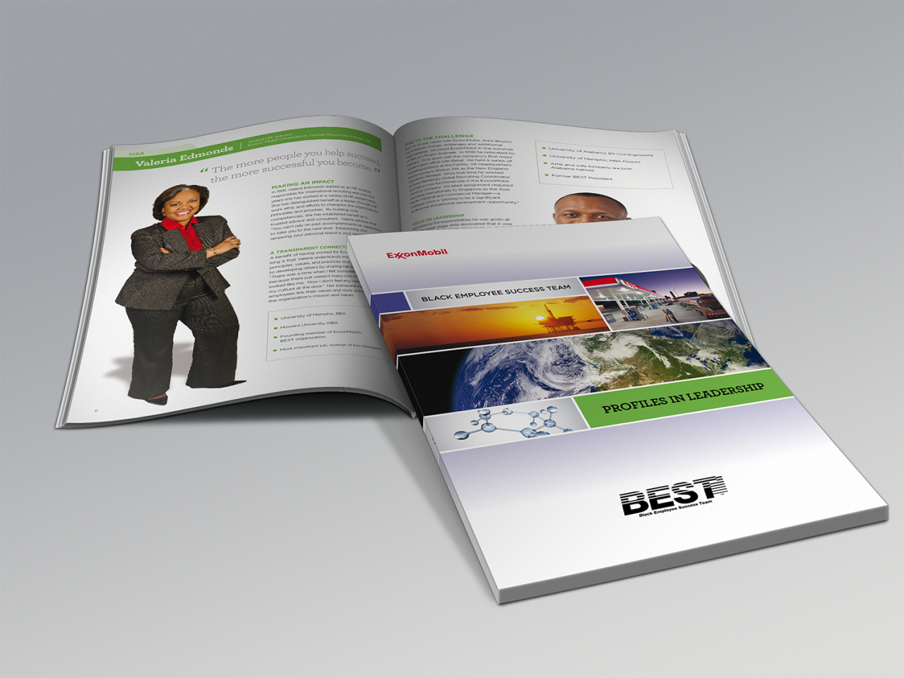 ExxonMobil Black Employment Success Team Leadership Brochure ExxonMobil Black Employment Success Team Leadership Brochure Client: ExxonMobil Role: Designer/Layout/Pre-press/Photo retouching/Print Design Related Tagged Adobe Illustrator, Adobe InDesign, Adobe Photoshop, Print Materials